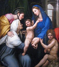 I mitten ser man "Madonna dell Impannata". Namnet kommer av det tygklädda fönstret i bakgrunden. Till höger syns slutligen "Madonna med diademet". Det andra barnet på bilderna är Johannes Döparen, som var ganska lika gammal som Jesus. Alla dessa tros ha målats kring 1510.