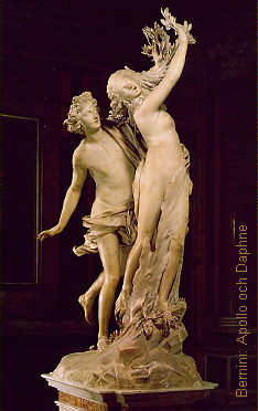 ![]() Daphne betyder ännu idag lagerträd på grekiska. Daphne är också en förort till Antiokia, där händelsen sägs ha ägt rum. Myten: Apollon förälskade sig i Dafne, men hon flydde undan. När han nästan hade nått henne, tog hennes mor hand om henne och förvandlade henne i ett lagerträd som skydd. I en annan version blir Dafne förvandlad av den kyska Artemis, som straff för att hon inte flydde undan fort nog.... Kommentar: Det saknas inte viss humor i att det i Daphne, Antiokia senare byggdes ett Apollontempel av Seleukos I.... © Bernhard Kauntz, Västerås 1998 Tillbaka till ![]() ![]() |