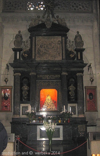 Ebenfalls in der Marienkapelle befindet sich die Mailänder Madonna. Dabei hat sie gar nichts mit Mailand zu tun ... Aber als Erzbischof Dassel die Gebeine der Heiligen Drei Könige aus Mailand holte, brachte er auch ein Madonnenbild mit, eben die Mailänder Madonna. Diese Figut ging aber bald aus unbekannten Gründen verloren - und der Name übertrug sich auf diese Statue. Sie ist aus Nussholz und wurde Ende des 13. Jahrhunderts von der Kölner Dombauhütte erschaffen. Das ist mehr als 800 Jahre her - das allein macht die Statue schon ehrwürdig, wie so Vieles in dieser Kirche.