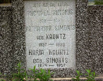 daughter of Martin Simonis *1837 in Donnersmarkt and Catharina Speck *1841 in Donnersmarkt
