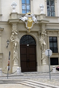 | Auch diese Haus wurde kurz vor der Jahrhundertwende zum 18. Jahrhundert erbaut. Das Tor mit den beiden seitlichen Atlanten und dem kleinen Balkon darüber ist sehenswert. Aber es ist eine Geschichte, die knappe hundert Jahre später stattfand, die erzählenswert ist. Zur Zeit der französischen Revolution befand sich die französische Botschaft in diesem Haus. Der Botschafter hieß Graf Bernadotte, vermutlich ein Ahnvater des schwedischen Königshauses, was die Geschichte nicht weniger interessant macht. Er erdreistete sich nämlich, am Gebäude die neue, revolutionäre Fahne zu hissen, das blau-weiß-rot der Trikolore. Den Wienern gefiel das weniger gut, hatten die Revoluzzer in Frankreich doch die Tochter Maria Theresias, Marie Antoinette, hingerichtet. Man versuchte zunächst das Tor einzuschlagen, was jedoch nicht gelang. Daher verwendete man die Atlanten als Leiter, um die Trikolore herunterzureißen und zu verbrennen.