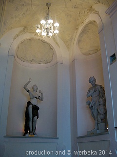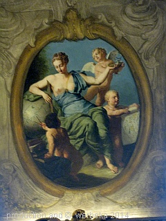 Aber es sind nicht nur die Bildhauerarbeiten, die den Besucher erfreuen, auch die Deckenmalereien sind großartig. Als Beispiel mag Urania dienen, auf ihr Symbol, die Erdkugel gelehnt. Auch die Symbole anderer künstlerischen Tätigkeiten sind vertreten. Man kann allein damit lange Zeit verbringen, nur die Schönheiten des Palais zu bestaunen.